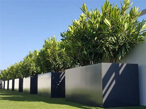 Plant in a pot with some texture to its finish. Our latest range of specialist large planters are designed for use with trees and other larger plants. These are made in a range of materials and finishes, including : With its glossy leaves and lovely scent, bay trees can thrive in pots and provide greenery on a patio or courtyard.